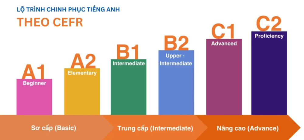 CEFR phân loại trình độ ngôn ngữ thành 6 cấp độ, từ A1 dành cho người mới bắt đầu đến C2 dành cho những người đã thành thạo và sử dụng ngôn ngữ một cách thành thạo.